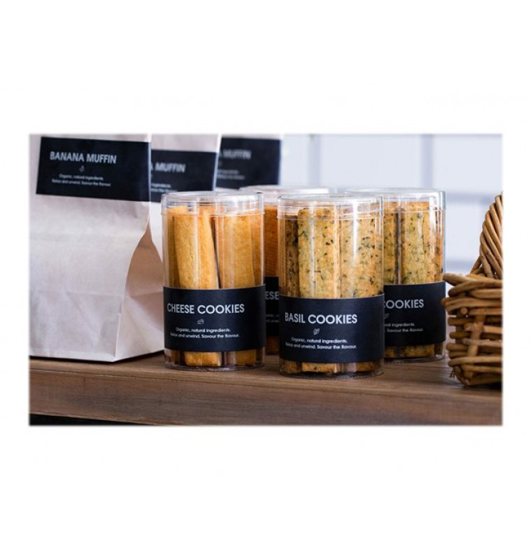 - Witte tekst op zwarte label