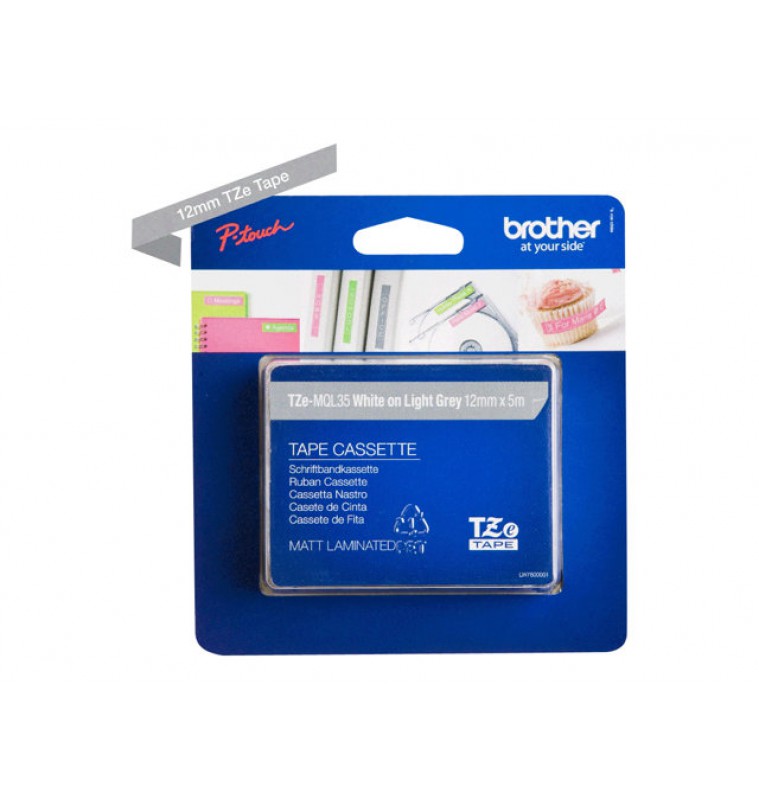 Voor al uw algemene labeleisen op kantoor, de werkplek of thuis is de Brother TZe-MQL35 gelamineerde labeltape wit op grijs een uitstekende keuze en geschikt voor gebruik met een ruim assortiment Brother P-touch labelprinters. TZe tapecassettes zijn snel en eenvoudig te gebruiken en de labels zijn in diverse breedtes, kleuren en materialen verkrijgbaar.