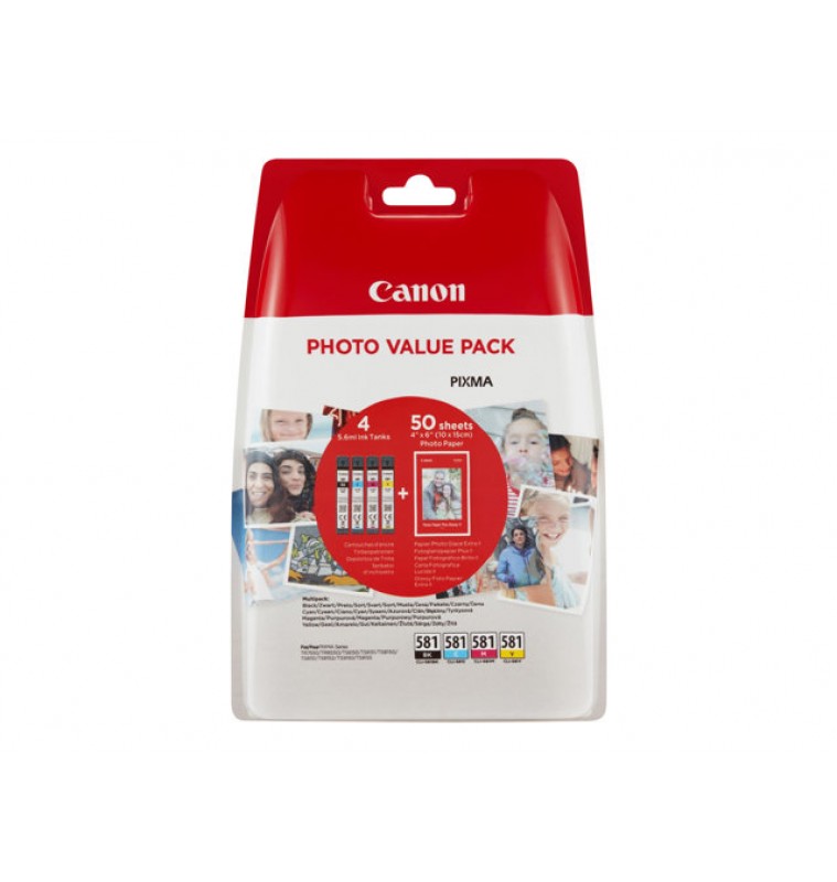 | Productbeschrijving | Canon CLI-581 C/M/Y/BK Photo Value Pack - 4 - zwart, geel, cyaan, magenta - origineel - inktreservoir / papierpakket |