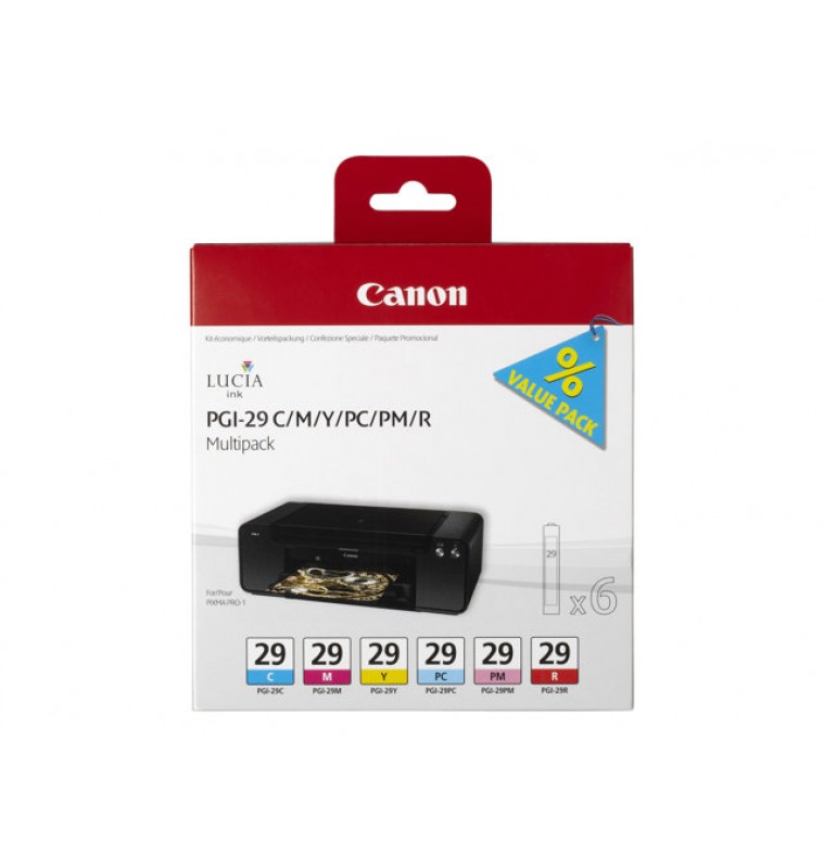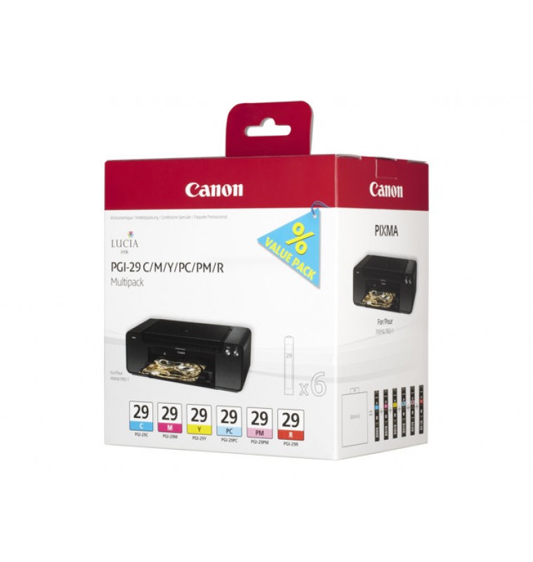 | Productbeschrijving | Canon PGI-29 CMY/PC/PM/R Multipack - geel, cyaan, magenta, rood, fotocyaan, fotomagenta - origineel - inkttank |