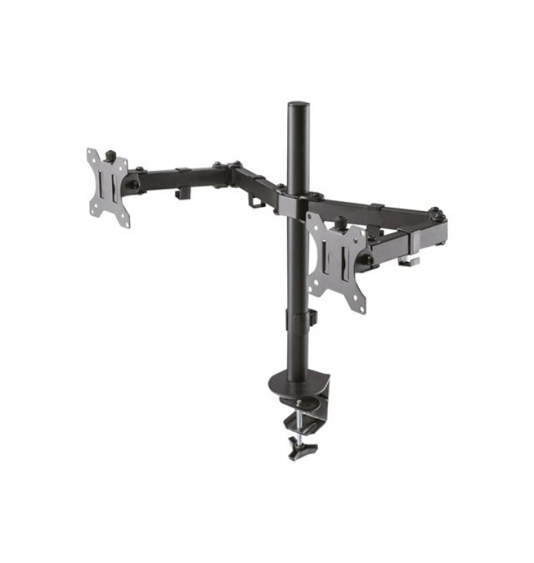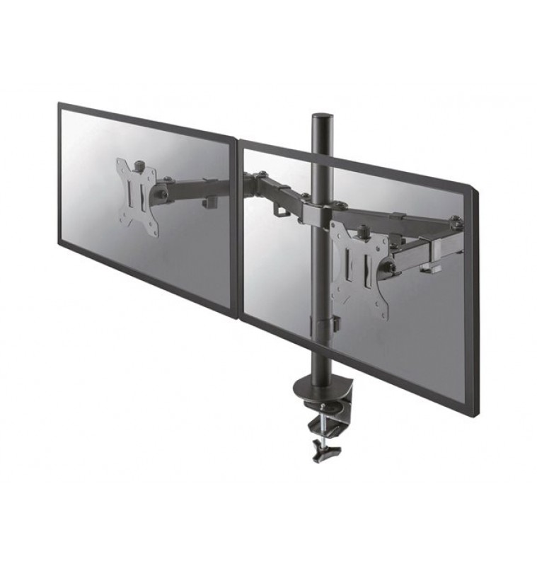 Met de Neomounts by Newstar FPMA-D550DBLACK monitorarm bevestigt u twee flatscreens aan het bureau via een bureauklem of bladdoorvoer.