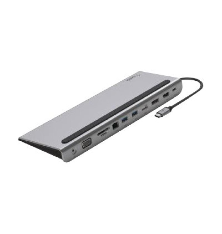Maak van uw USB-C-laptop het ultieme werkstation met het meerpoorts 11-in-1 USB-C-dockingstation. Deze alles-in-één-oplossing geeft u toegang tot poorten die de laatste jaren niet meer op nieuwere laptops te vinden zijn. Zo kunt u monitoren, SD-kaarten, geheugensticks en meer aansluiten via de USB-C-poort van uw laptop. Dankzij passthrough opladen met tot 100 W hoeft u niet te kiezen tussen poortuitbreiding en stroomvoorziening. Dit dockingstation ondersteunt gegevensoverdracht met tot 5 Gbps tussen aangesloten apparaten en uw laptop en ondersteunt HD-beeldschermresoluties tot 4K via HDMI-, DisplayPort- en VGA-videopoorten. En dankzij de Gigabit Ethernet-poort heeft u altijd een veilige internetverbinding.