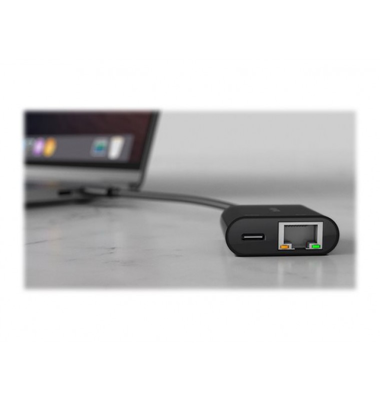 Productbeschrijving Belkin ethernet- en oplaadadapter - USB-C - Gigabit Ethernet x 1 + USB-C (alleen voeding) x 1