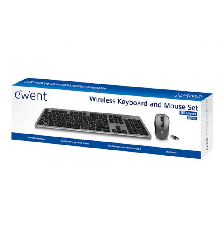 Ewent EW3261 - toetsenbord en muis set - AZERTY - Belgisch - zwart |
