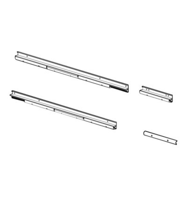 Inhoud pakket 2 x linkerrails, 8 extra rails, 29 M6 x 16 T30-pankopschroeven, 2 x rechterrails, 33 M4 x 12 torx-schroeven met platte kop, 16 x kanaalafdekkingen