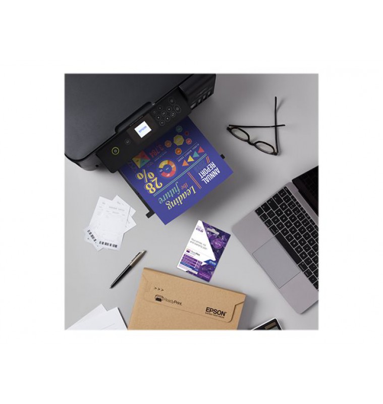 Deze EcoTank zonder inktpatronen is ontworpen voor uw gebruiksgemak en wordt geleverd met het equivalent van 88 inktpatronen aan inkt . Dit betrouwbare en gebruiksvriendelijke model is uitgerust met een verbeterd inktvulsysteem met nieuwe inktflessen die zijn ontwikkeld voor opnieuw vullen zonder geknoei. Dit model wordt verder geleverd met een LCD-scherm van 3,7 cm, een SD-kaartsleuf en dubbelzijdig afdrukken. De printer wordt geleverd met een extra fles zwarte inkt.- Inkt voor drie jaar: Wordt geleverd met het equivalent van 72 inktpatronen aan inkt