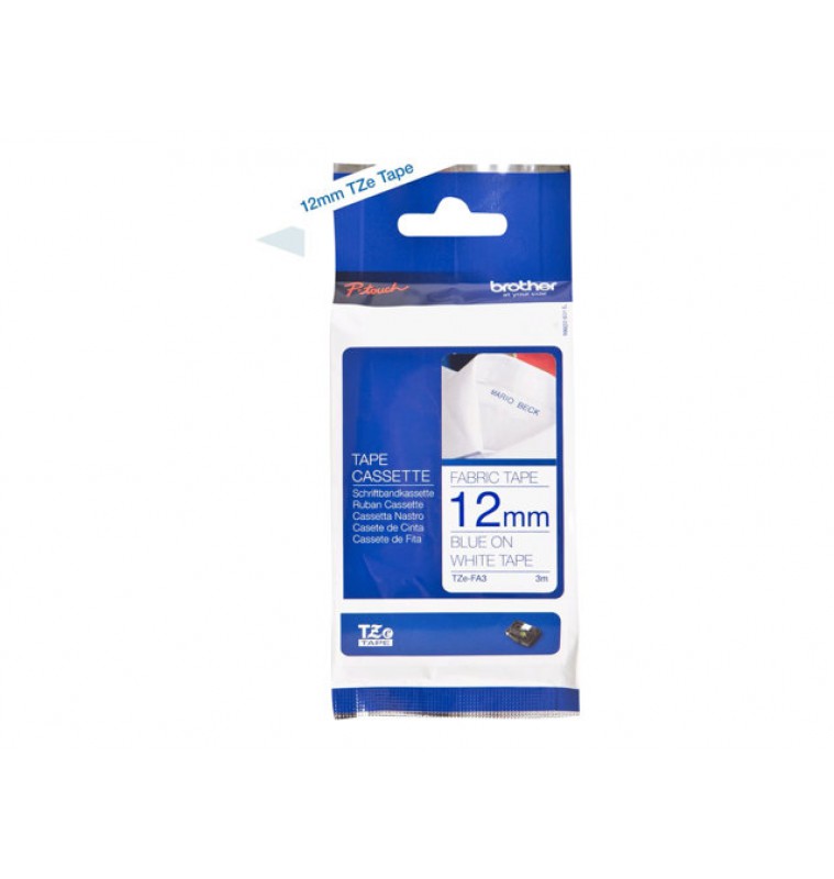 BROTHER P-Touch TZE-FA3 blue on white textile 12mm
