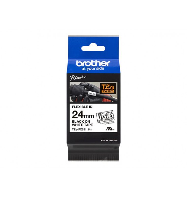 Deze 24 mm TZe-FX251 flexibele ID labeltape is speciaal ontworpen voor gebruik bij het labelen van kabels en buizen, en is door Brother uitvoerig getest om te zorgen dat u snel en efficiënt identificatie labels kunt afdrukken.